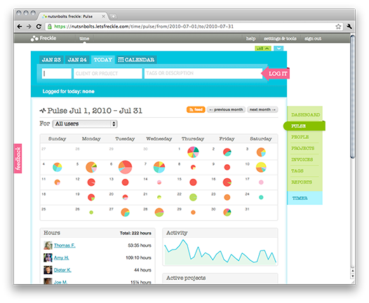 Or use our performance-tuned Quick Entry box, logging time in as few as 6 key strokes. Or our keyboard-friendly Timer bookmarklet. Import your Harvest, Freshbooks, Basecamp or csv data. Or use our API. Learn more in our tour.